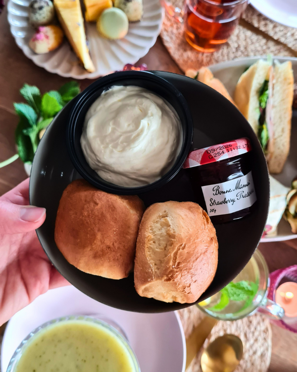 - Scones met clotted cream en jam