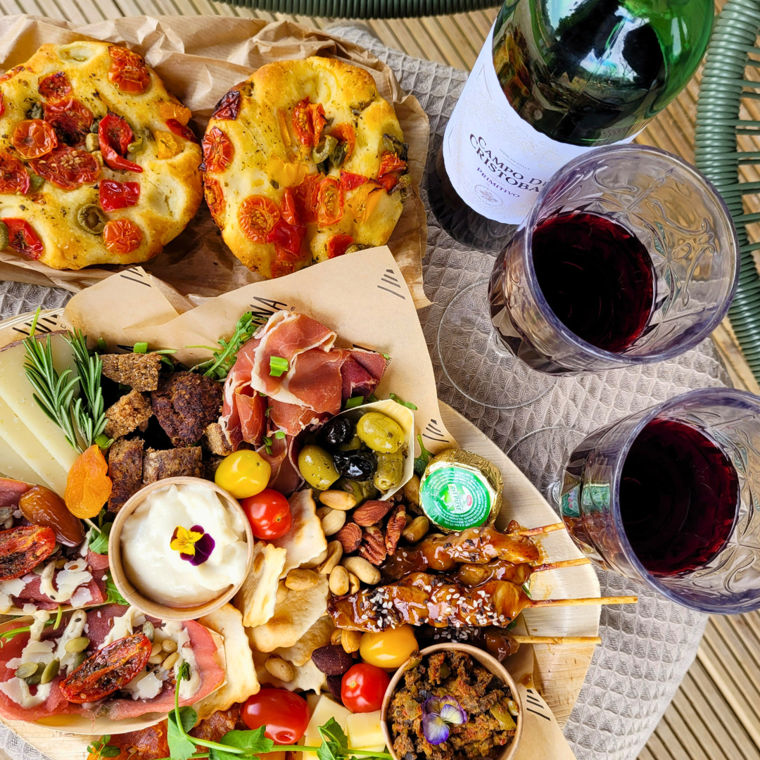 Een heerlijke borrelplank bomvol lekkers! Van gemarineerde olijfjes, kaasjes tot diverse vleeswaren. Geserveerd op een mooie plank met daarbij 2 foccacia broodjes en afgeleverd aan jouw (lodge)deur! Wij bezorgen deze borrelplank op de gewenste dag. Als jullie niet aanwezig zijn dan zetten we deze voor je in de koelkast.